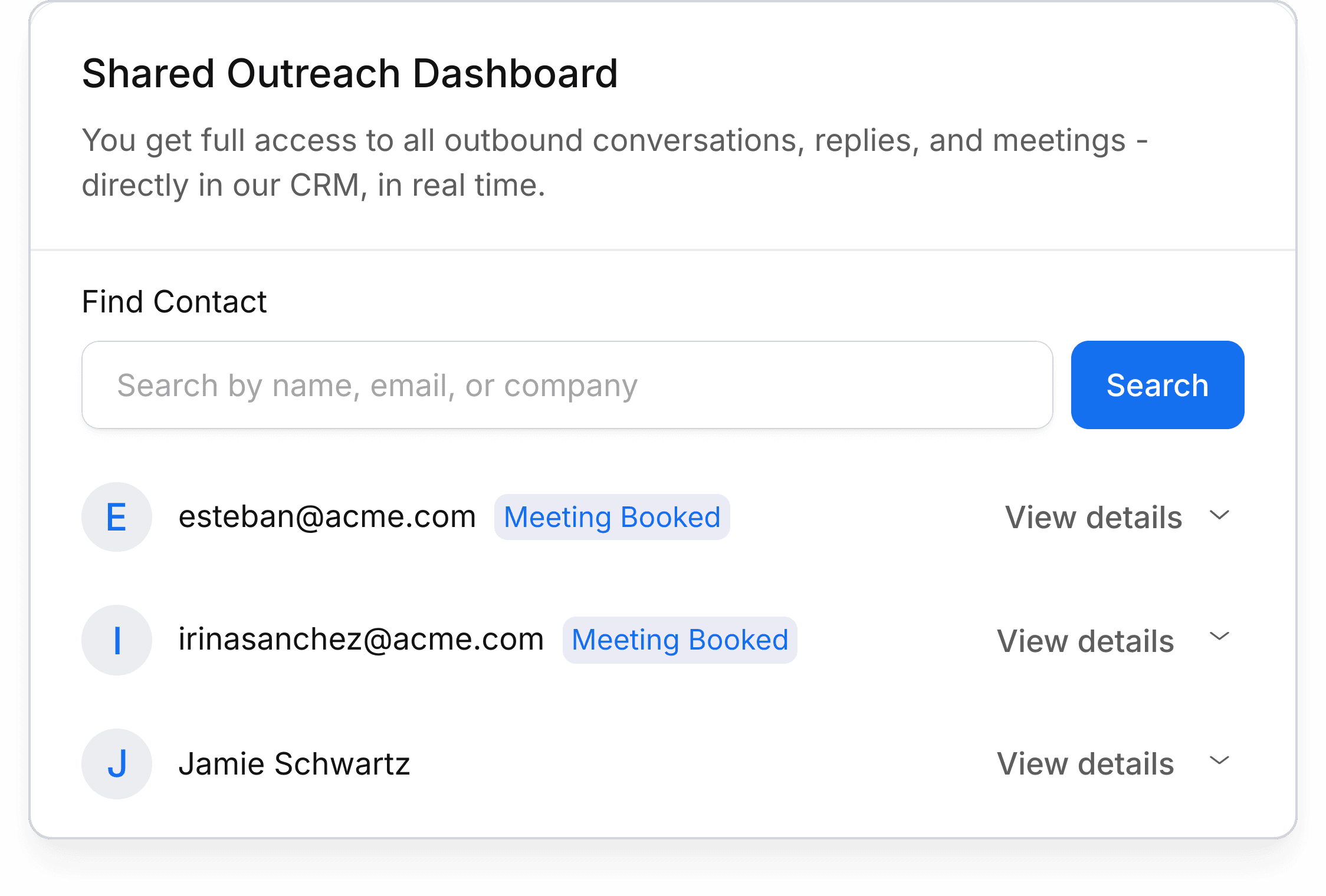 You always see who we contact, how conversations evolve, and what moves the pipeline.